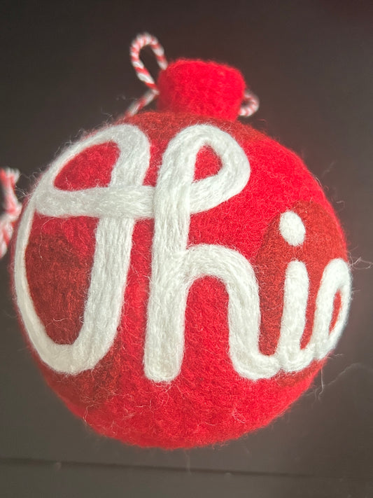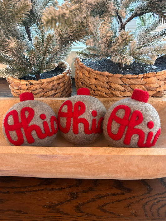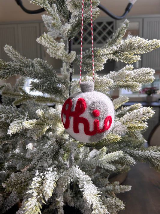Script Ohio - Grey ornament with scarlet script Ohio