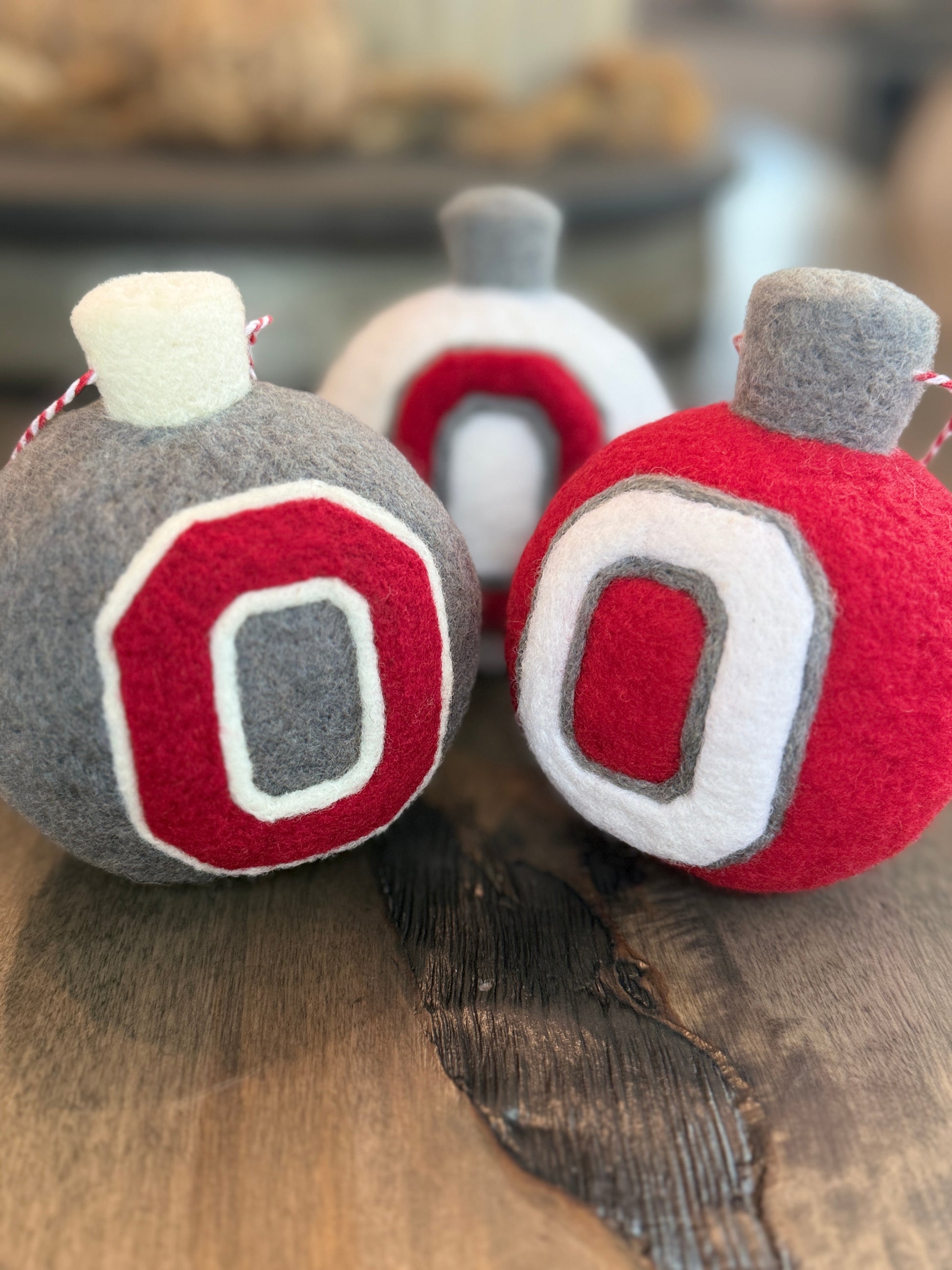 All ornaments on our site are hand-made so please expect minor variations in each ornament. The "O" may be a little smaller or the leaf a little bigger. Each ornament is one of a kind. We try to keep them all very similar but there are some differences from ornament to ornament.